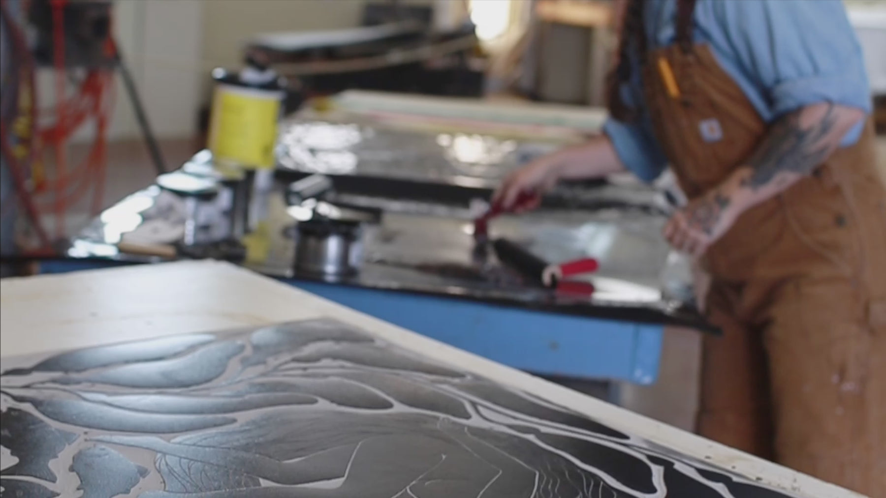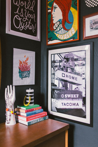 Shop our collection of cards, stickers, and giclee print reproductions of our original steamroller-pressed linoleum relief prints!